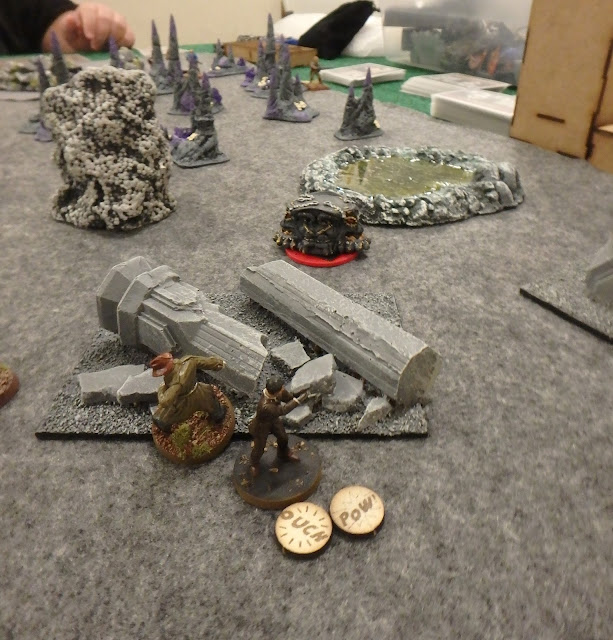 O'Connell's accursed gang starts coalescing around the center objective. Menace and Buckshot continue to hide behind ugly columns.